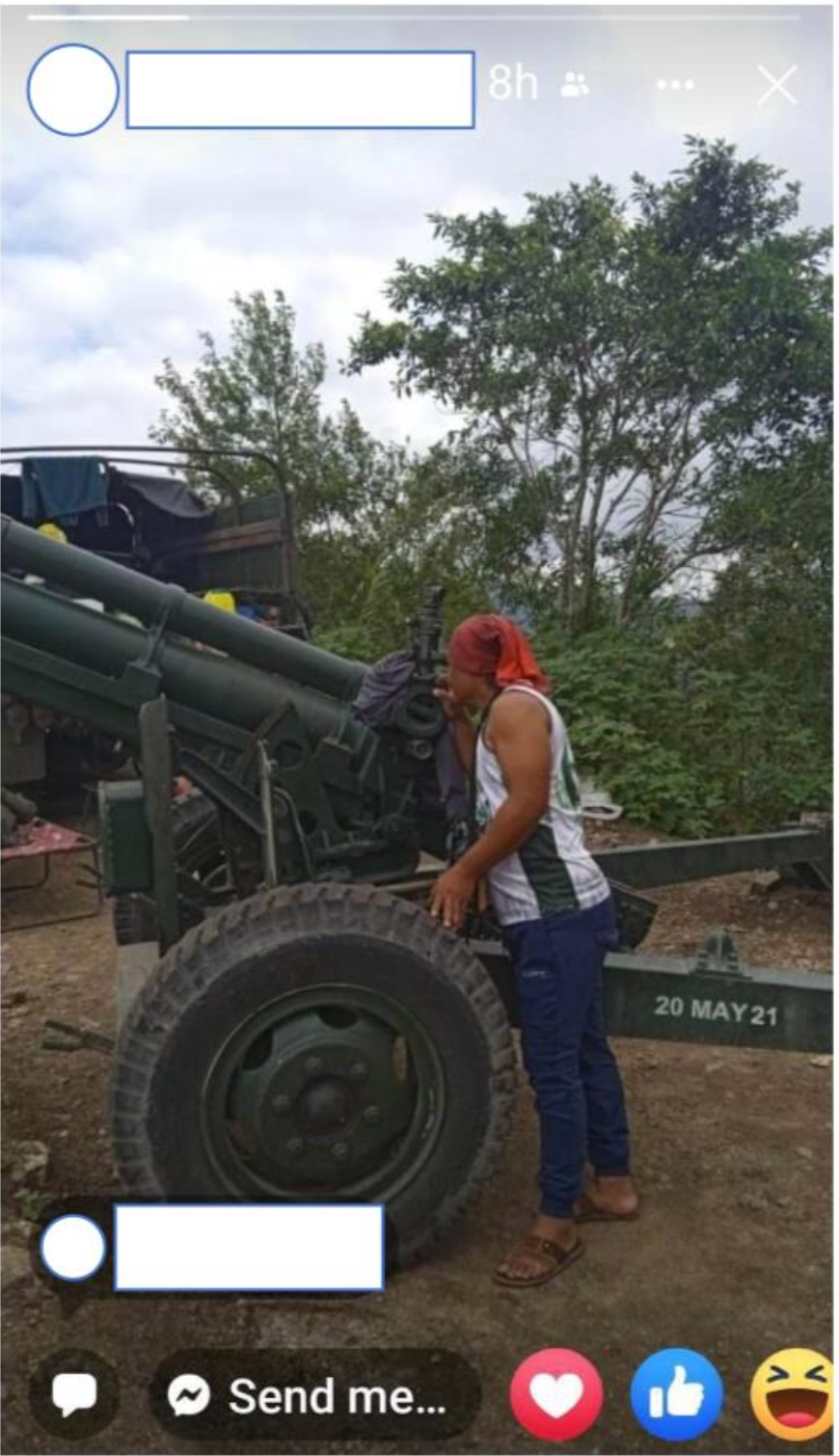 A Facebook story of a concerned citizen of a photo of a howitzer apparently placed at Barangay Guisang poblacion, which is facing Gawaan. (Image courtesy of Eufemia Bog-as)